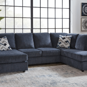 The Albar Place Sectional features a polyester upholstery that is both durable and easy to maintain. Its platform foundation system is engineered to resist sagging three times better than traditional spring systems, maintaining a smooth, wrinkle-free look even after extensive use. This system ensures even support, preventing dips and sags that are common with sinuous spring foundations.