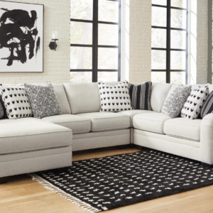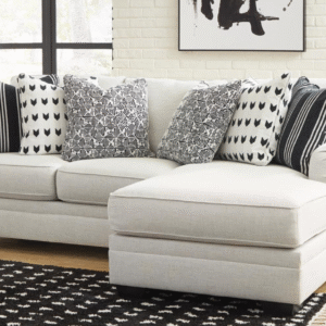 Adding a delightful layer of interest, the accent pillows introduce an on-trend pop of pattern, infusing your space with a touch of contemporary flair. Elevate your living room with a charming approach to comfort and design, where tradition meets innovation in perfect harmony. The Huntsworth Sectional Sofa in Gray by Jennifer Furniture is more than just furniture – it’s a conversation starter, a reflection of your refined taste, and a haven of comfort for you and your loved ones.