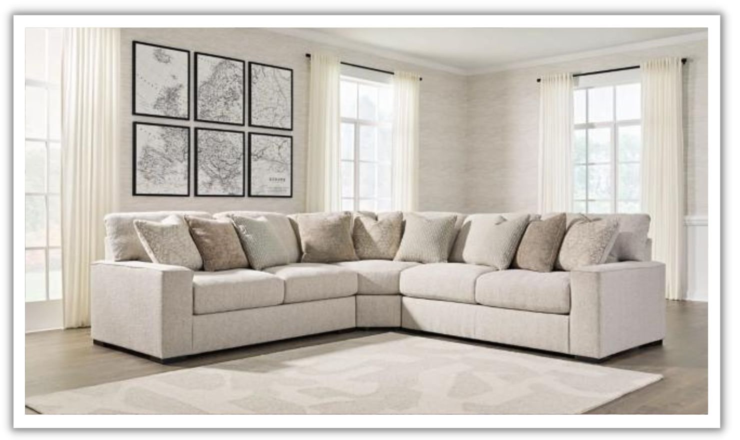Includes 4 pieces: left-arm facing loveseat, armless chair, wedge and right-arm facing loveseat