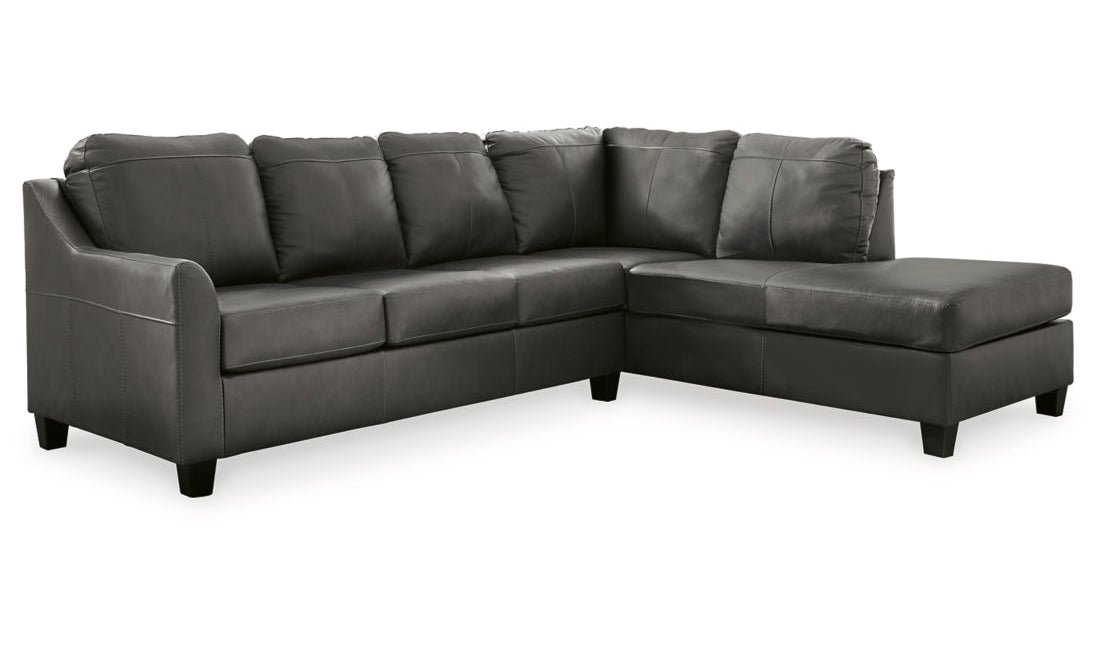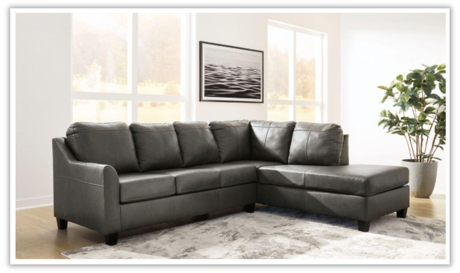 Luxurious lounging, everyday affordability. This Valderno L-shaped leather sectional sofa prioritizes comfort that suits your modern lifestyle. Its leather match upholstery indulges you in soft seating, with subtle dimension added by natural pebble detailing. Ending in tapered accent legs, this sectional is a chic way to complete your home’s central, contemporary hub for entertainment.