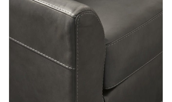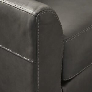 - Genuine leather typically covers inside areas such as the back, seat and arm cushions; skillfully matched faux leather covers the remaining areas